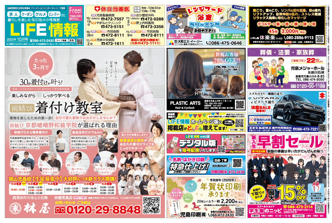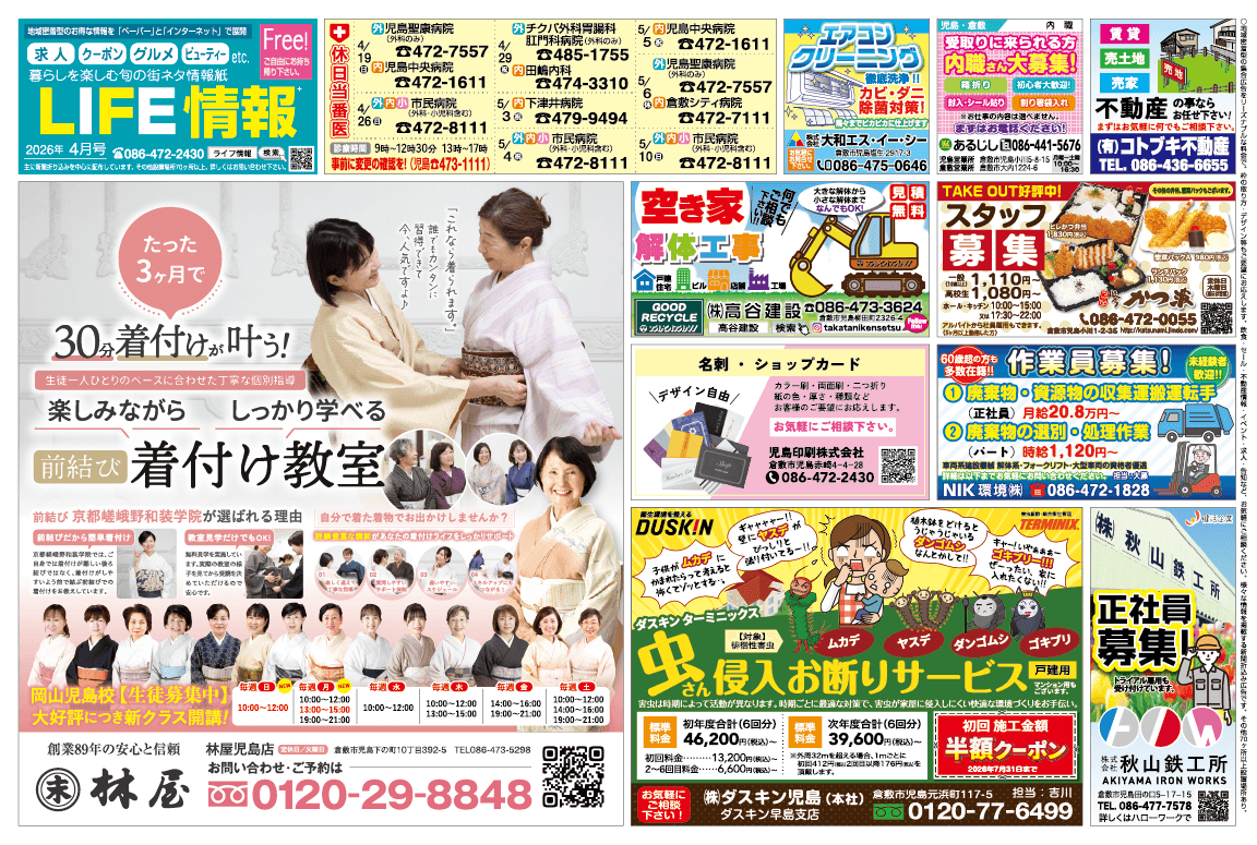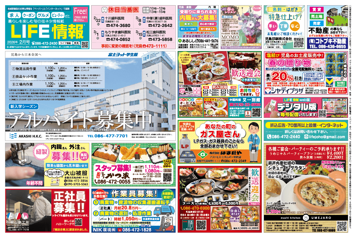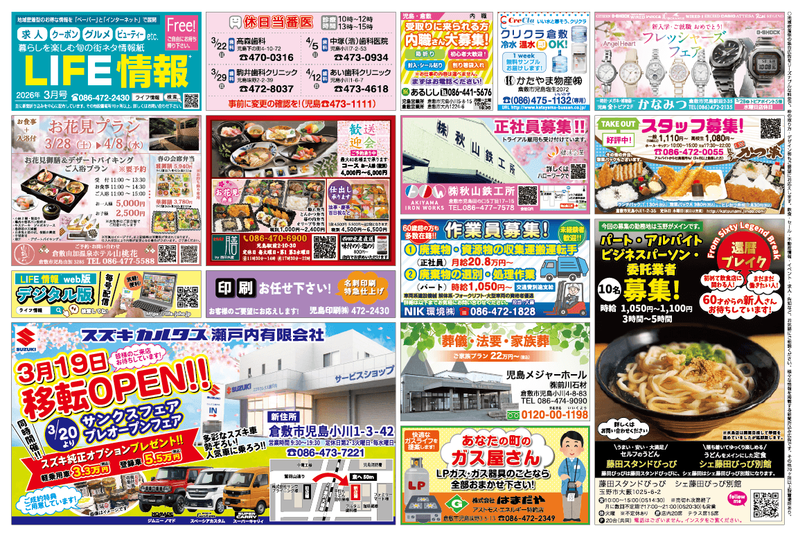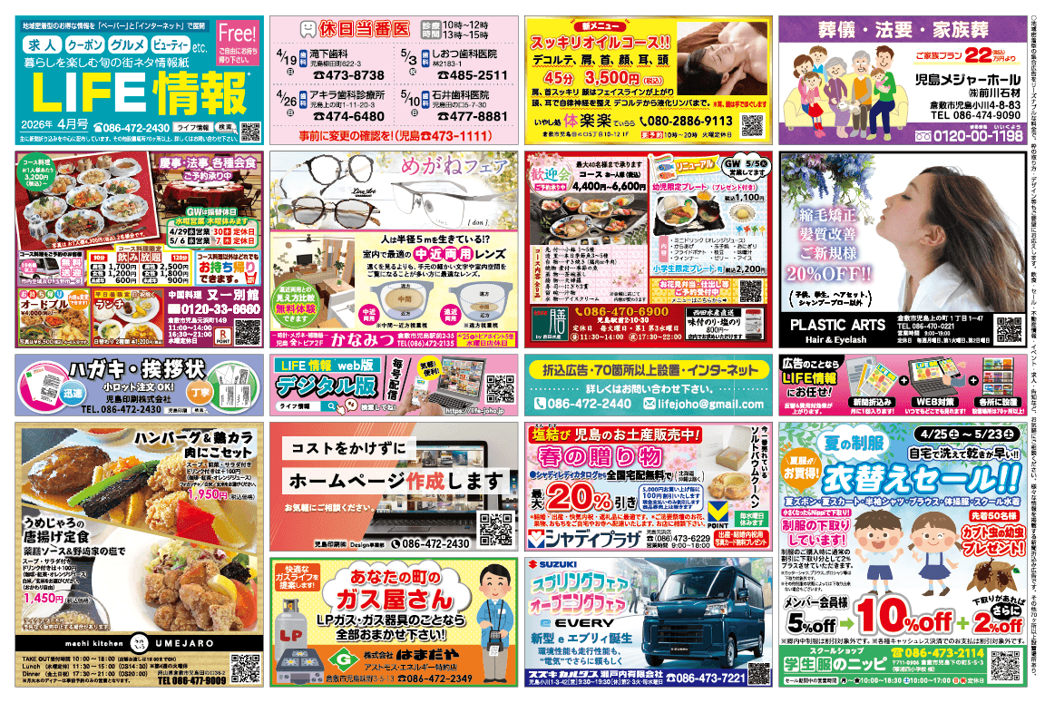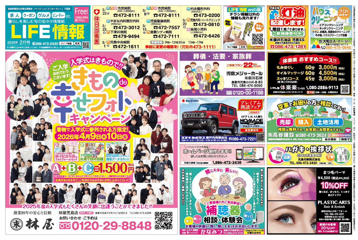 倉敷市児島地域を中心とした地域密着型の集合広告です。
