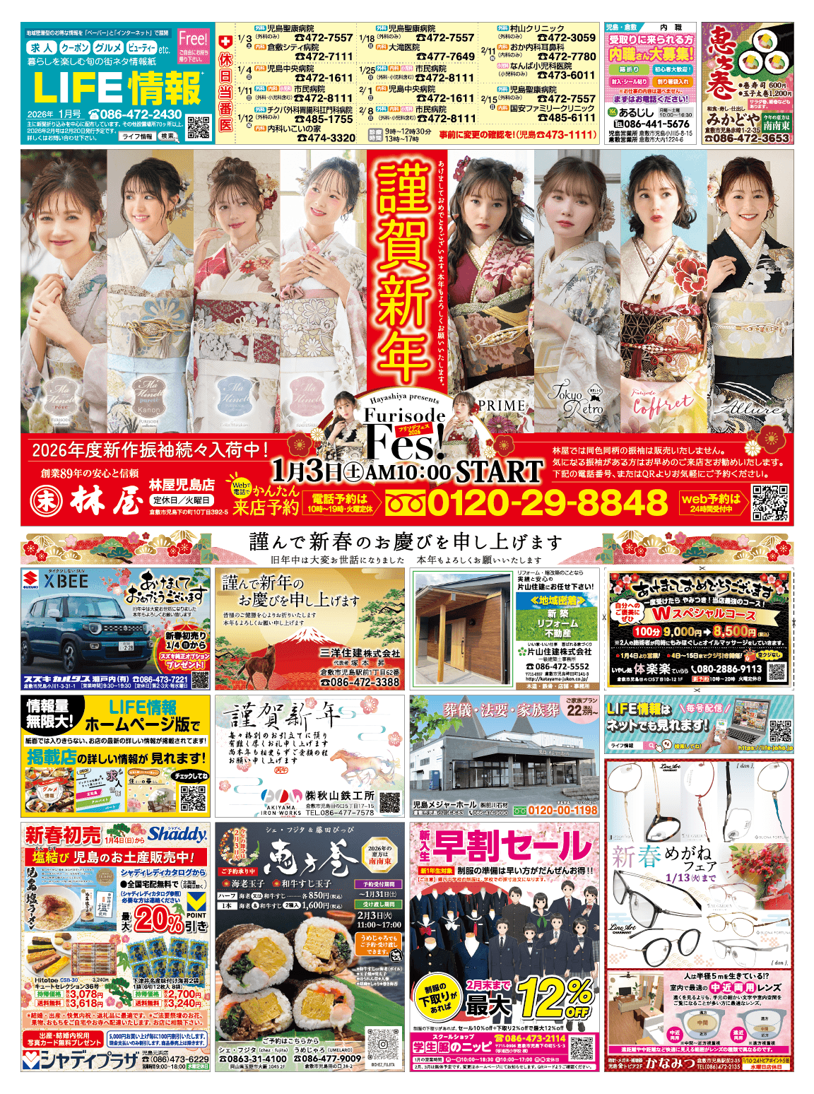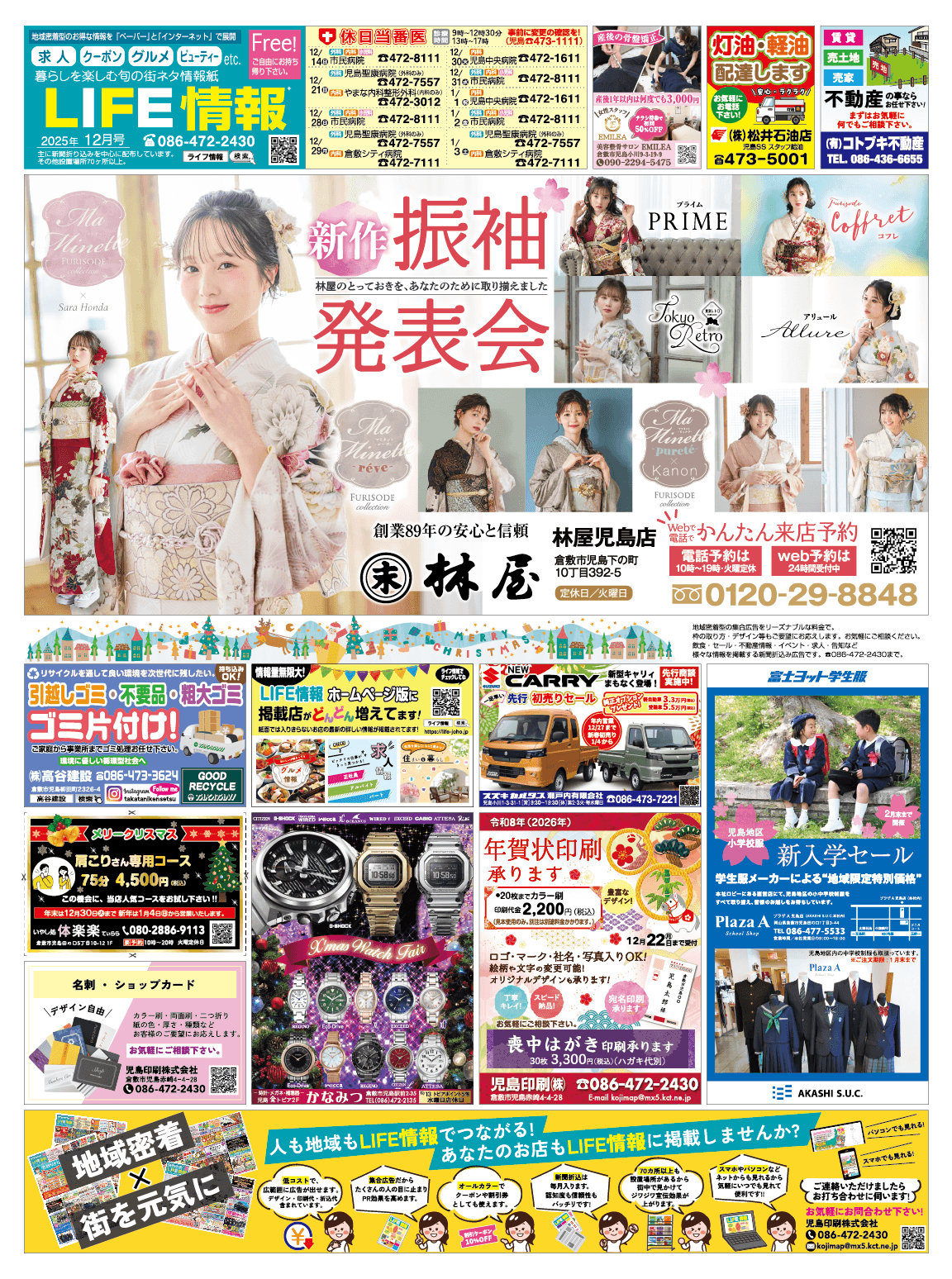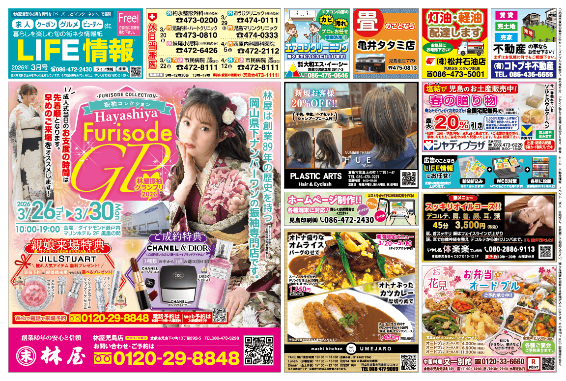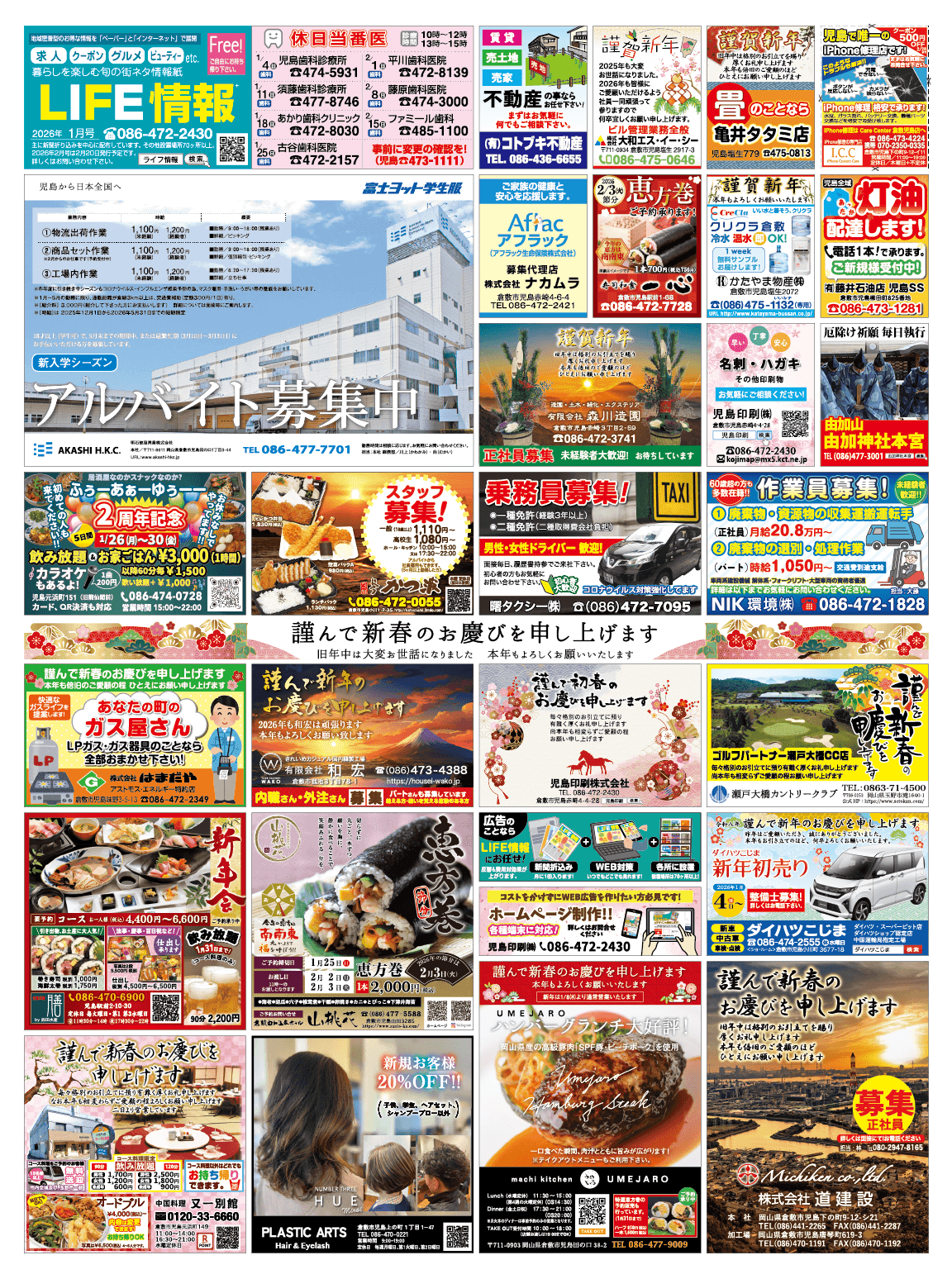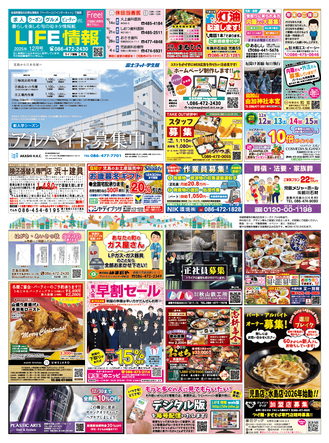 倉敷市児島地域を中心とした地域密着型の集合広告です。